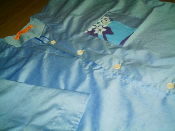 ☆手作り☆ 青ワイシャツ地祭りシャツ 大(L~XL)新品 送無料あり