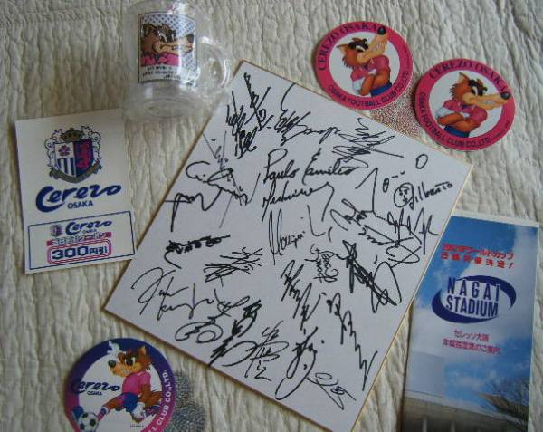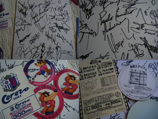 Jリーグ セレッソ大阪 CEREZO OSAKA 1995年前後在籍主要選手 直筆サイン入り色紙   @当時のステッカーなど数点