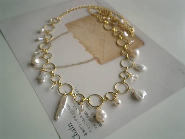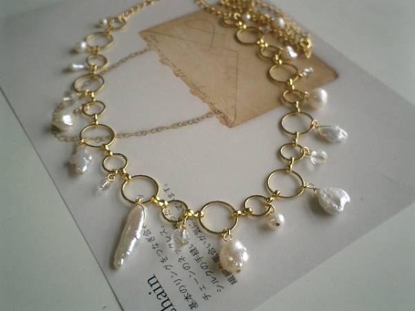 ロマンチックを集めて・・シリーズです♪やさしい白・・オフホワイトの淡水パールと水晶のネックレスです♪丸玉やハート、芥子パールやクロスなどデザイン違いのパールに水晶のランダムカットをデザインチェーンに繋いで可憐な表情です♪淡水パールは4ミリから23ミリ位までの大きさ違い、デザイン違い、水晶は4ミリと6ミリのランダムカットです♪長さは全長70センチ位で調節自由です♪チョーカー風にされても可愛いです♪お揃いのブレスレットも出品しています♪♪シンプルで飽きのこないいつまでも着けられるデザインを考えて作りました♪ハンドメイドをご理解頂いてノークレーム、ノーリターンでお願いします