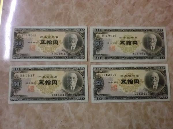 日本銀行券B号50円 高橋50円を4枚セットです。
