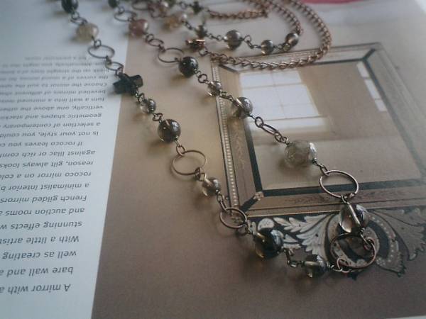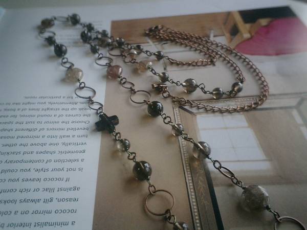 ロゼッタの宝石箱・・シリーズです♪シックなハート・・神秘的なスモーキークォーツとルチルクォーツのネックレスです♪繊細なライトブラウンのスモーキークォーツとハートのルチルクォーツがロマンチックな表情です♪スモークークォーツは6ミリ、8ミリの丸玉、12ミリのクロスです♪10ミリのスモーキークォーツのハートを合わせました♪長さは全長115センチ位で調節自由です♪2連にされても素敵です♪お揃いのネックレスやブレスレットやイヤリングも出品しています♪シンプルで飽きのこないいつまでも着けられるデザインを考えて作りました!ハンドメイドをご理解頂いてノークレーム、ノーリターンでお願いします