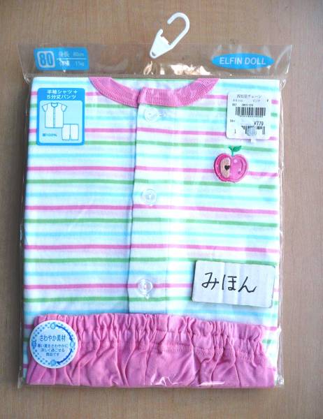 ★お買い得★新品★即決★半袖シャツ5分丈パンツ80りんご12m入園夏女児出産祝い誕生日プレゼントかわいいピンクボーダー赤ちゃん服