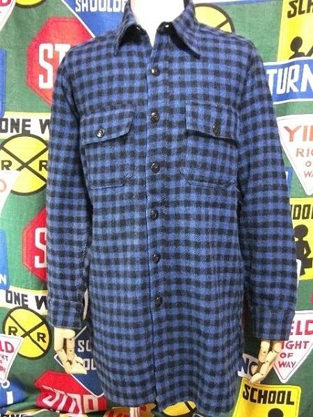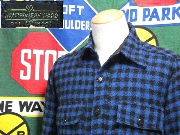 ☆希少☆USA製アメリカ製MONTOGOMERY WARDモンゴメリーワードビンテージウールシャツ青黒チェックブルーブラック30年代40年代30s40s