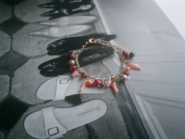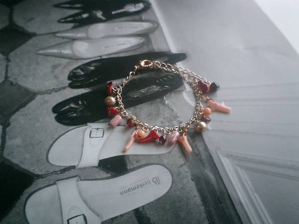 ナイーブ少女・・シリーズです♪春色の小さな花束・・ピンク珊瑚や赤珊瑚やガーネット、インカローズ、シャンパンブロンズ色の淡水パールなどやさしい色を集めたブレスレットです♪ピンクゴールドのチェーンを合わせて甘すぎない大人のロマンチックしています♪3ミリ、4ミリの丸玉やチューブ、さざれなど大きさ違い、デザイン違いの珊瑚やガーネット、インカローズ、淡水パールをランダムに繋いで可憐な表情です♪長さは全長23センチ位で調節自由です♪♪お揃いのネックレスも出品しています♪ハンドメイドをご理解いただいたノークレーム・ノーリターンでお願いします♪