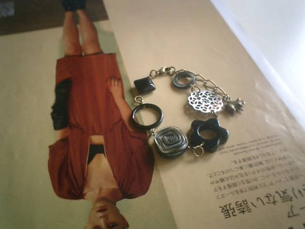 ルーズ・シルエット・・シリーズです♪パンクな薔薇・・シックなオニキスのブレスレットです♪12ミリから20ミリ位までのリングやスクエア、フラワーリングなどデザイン違いのオニキスに黒蝶貝の薔薇や透かしパーツを合わせてキュートモダンしています♪長さは全長23センチ位で調節自由です♪お揃いのネックレスも出品しています♪シンプルで飽きのこないいつまでも着けられるデザインを考えて作りました!ハンドメイドをご理解頂いてノークレーム、ノーリターンでお願いします