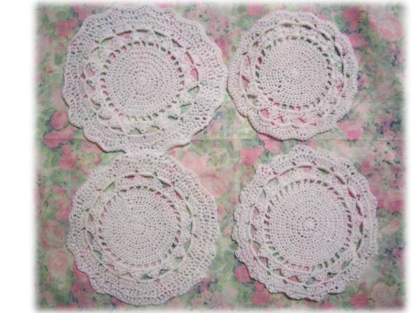 ハンドメイド コットン レース編み ドイリー☆④ 4枚 テーブルセンター ヴィクトリアン