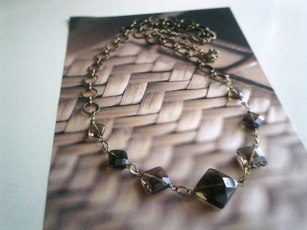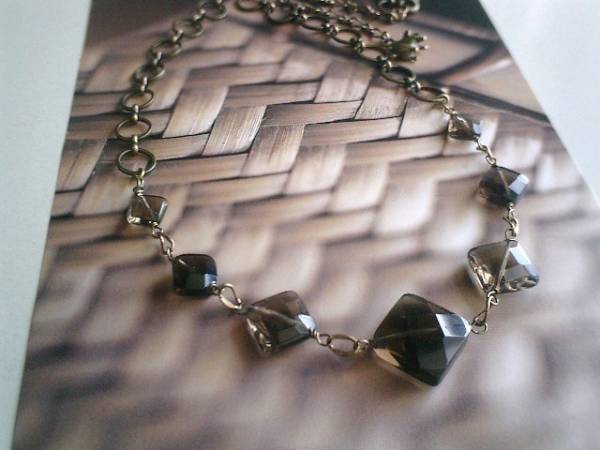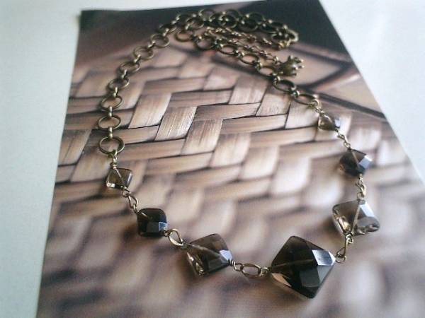 秋色・セレクション・・シリーズでス♪夜のオペラ座・・シックなスモーキークォーツのネックレスです♪8ミリ、10ミリ、12ミリ、14ミリの大きさ違いのダイヤカットのスモーキークォーツにデザインチェーンを合わました♪繊細なカットが神秘的な表情です♪長さは全長65センチ位で調節自由です♪チョーカー風にされても素敵です♪♪お揃いのブレスレットも出品しています♪シンプルで飽きのこないいつまでも着けられるデザインを考えて作りました!ハンドメイドをご理解頂いてノークレーム、ノーリターンでお願いします