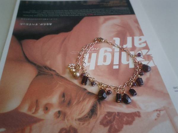 ナチュラル気分・・シリーズです♪ガーネットを集めて・・深い赤のガーネットのブレスレットです♪4ミリの丸玉、7ミリのチューブ、8ミリから9ミリのドロップカットなどデザイン違いのガーネットにピンクゴールドのチェーンを合わせて可憐な表情です♪長さは全長23センチ位で調節自由です♪お揃いのネックレスやピアスも出品しています♪シンプルで飽きのこないいつまでも着けられるデザインを考えて作りました!ハンドメイドをご理解頂いてノークレーム、ノーリターンでお願いします