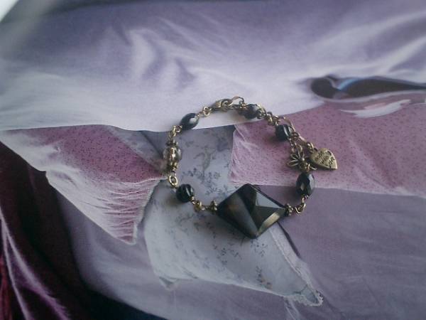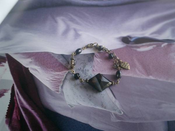 ノスタルジックに染まって・シリーズです♪ブラウンオニキスのシックなブレスレットです♪8×6ミリのナツメカットや6ミリのSラインなどデザイン違いのオニキスに6ミリのランダムカットのスモーキークォーツやお花のチャームを合わせてさりげなくロマンチックしています♪トップは18×22ミリ位のダイヤカットのブラウンオニキスです♪長さは23センチ位で調節自由です♪♪お揃いのネックレスも出品しています♪シンプルで飽きのこないいつまでも着けられるデザインを考えて作りました!ハンドメイドをご理解頂いてノークレーム、ノーリターンでお願いします