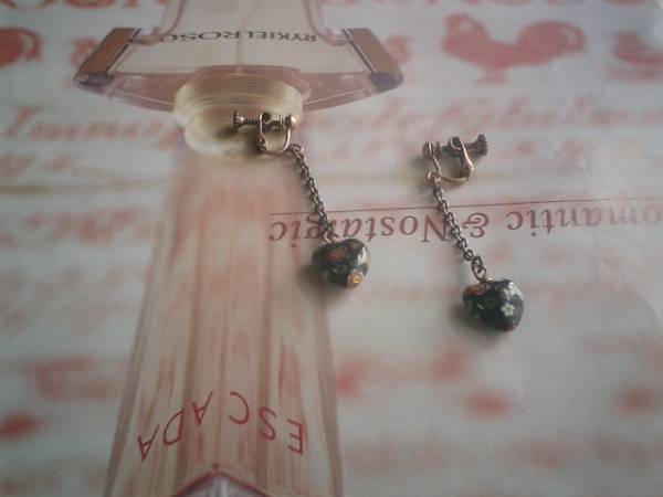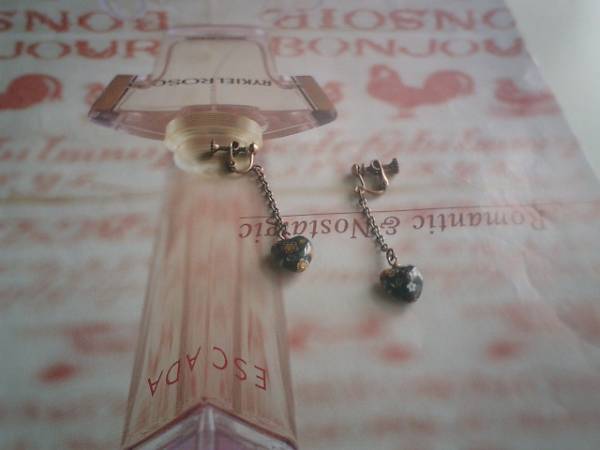 女の子テイスト・・シリーズです♪シックな黒の小花柄・・小花柄のベネチアビーズのイヤリングです♪繊細なチェーンに10ミリ位の小花柄のベネチアビーズを合わせて可憐な表情です♪♪長さは全長5センチ位です♪ピアスにも変更出来ます♪お揃いのネックレスやブレスレットも出品しています♪シンプルで飽きのこないいつまでも着けられるデザインを考えて作りました!ハンドメイドをご理解頂いてノークレーム、ノーリターンでお願いします