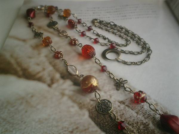 シック・フレンチの定義・・シリーズです♪オリエンタルな赤・・深い赤のネックレスです♪ベネチアビーズやシャネルビーズやモダンビーズなど個性的な素材を集めて神秘的な表情です♪6ミリから18ミリ位までの丸玉やオーバルカットやナツメ型、Sラインなど大きさ違い、デザイン違いです♪長さは全長107センチ位で調節自由です♪画像のように2連にされても素敵です♪お揃いのネックレスやブレスレットやイヤリングも出品しています♪♪シンプルで飽きのこないいつまでも着けられるデザインを考えて作りました!ハンドメイドをご理解頂いてノークレーム、ノーリターンでお願いします