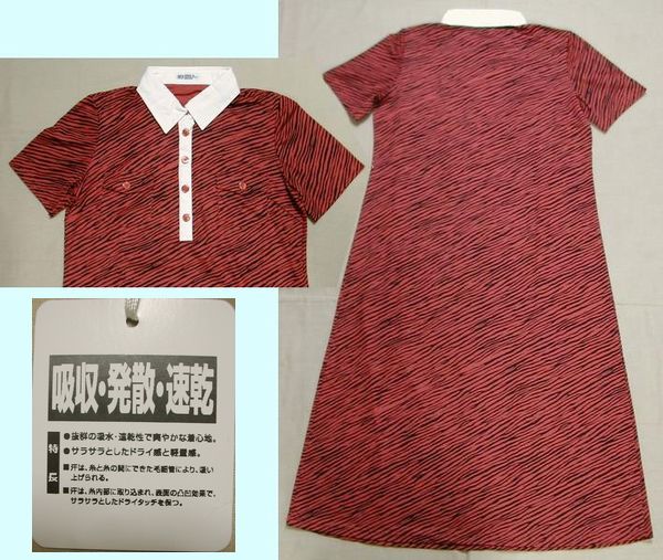 ■タグ付新品:茶系アニマル柄?ワンピース 夏向き機能素材L DmM10