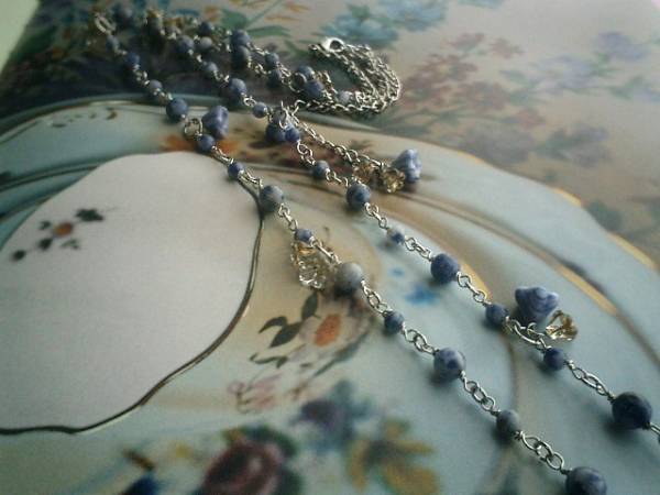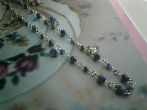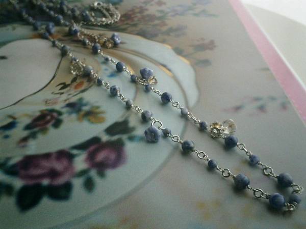 私的・乙女心・・シリーズです♪可憐な青い小花・・デニムラピスとチェコのお花のネックレスです♪4ミリ、6ミリの丸玉のデニムラピスに6ミリ、8ミリのチェコのお花を合わせました♪クリスタルやブルーの小さなお花が儚げにロマンチックしています♪長さは全長99センチ位で調節自由です♪2連にされても素敵です♪お揃いのブレスレットも出品しています♪シンプルでいつまでも着けられるデザインを考えて作りました!ハンドメイドをご理解頂いてノークレーム、ノーリターンでお願いします