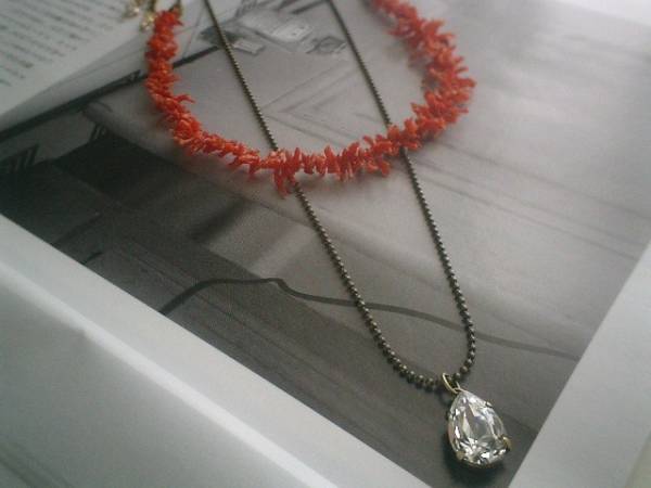 イノセントなパターン・・シリーズです♪ギリシャへ旅・・神秘的なサルディニア珊瑚のネックレスとスワロのネックレス2点セットです♪単品でも出品しています♪ナチュラルなやさしい赤のサルディニア珊瑚は華奢なチェーンを合わせて可憐な表情です♪長さは全長65センチ位で調節自由です♪チョーカー風にされても可愛いです♪スワロのクリスタルは14×10ミリです♪クラシカルなボールチェーンを合わせてアンティークモダンしています♪長さは72センチ+アジャスター13センチで最長85センチ位です♪2本重ねて着けても単品でも素敵です♪お揃いのブレスレットやイヤリングも出品しています♪シンプルで飽きのこないいつまでも着けられるデザインを考えて作りました!ハンドメイドをご理解いただいてノークレーム、ノーリターンでお願いします