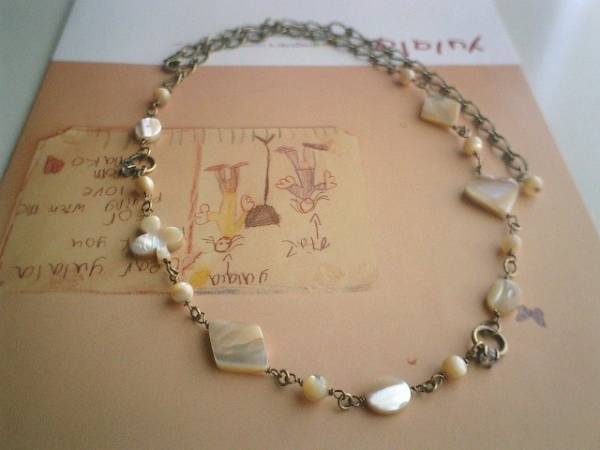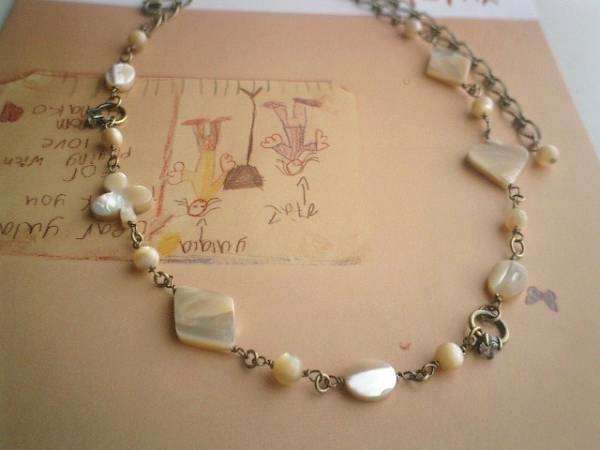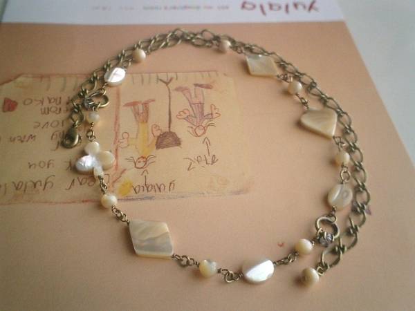 アンニュイ気分で・・シリーズです♪おもちゃ箱を開けて・・シックなベージュ色のマザーオブパールのネックレスです♪♪6ミリの丸玉や10ミリのオーバルや16ミリから20ミリ位のトランプ柄のデザイン違いのマザーオブパールにジルコニアリングを合わせてキュートモダンな表情です♪長さは全長65センチ位で調節自由です♪画像のようにチョーカー風に着けられても可愛いです♪お揃いのブレスレットやピアスも出品しています♪シンプルで飽きのこないいつまでも着けられるデザインを考えて作りました♪ハンドメイドをご理解頂いてノークレーム、ノーリターンでお願いします