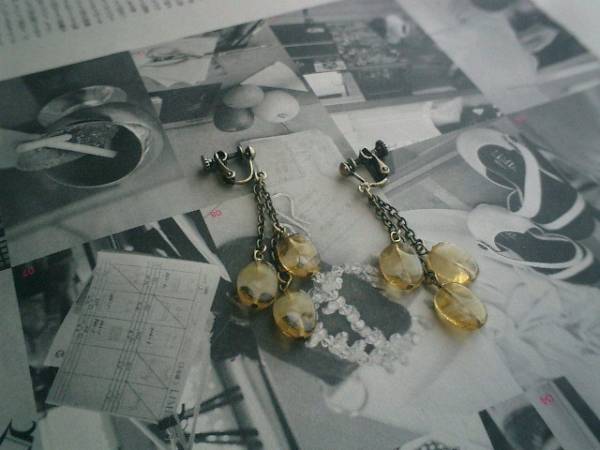 ベーシック・スタイル・・シリーズです♪私的デザイン・・キュートモダンなイヤリングです♪ピアスにも変更出来ます♪13×10ミリ位のフラットオーバルのチェコビーズは2トーンのお色がロマンチックな表情です♪長さは6・5センチ位です♪お揃いのセットやネックレスやブレスレットも出品しています♪シンプルで飽きのこないいつまでも着けられるデザインを考えて作りました!ハンドメイドをご理解いただいてノークレーム、ノーリターンでお願いします