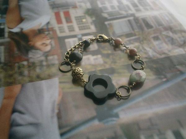 ガラスの靴の女の子・・シリーズです♪お花のオニキスとグリーンガーネットのシックなブレスレットです♪黒とダークグリーンでまとめてキュートモダンしています♪オニキスは6ミリの丸玉、10ミリのコイン、20ミリのフラワーリングなど大きさ違い、デザイン違いです♪6ミリの丸玉やフラットオーバルのグリーンガーネットやデザインメタルやデザインチェーンを合わせて可憐な表情です♪長さは全長23センチ位で調節自由です♪♪お揃いのネックレスやピアスも出品しています♪シンプルで飽きのこないいつまでも着けられるデザインを考えて作りました!ハンドメイドをご理解頂いてノークレーム、ノーリターンでお願いします