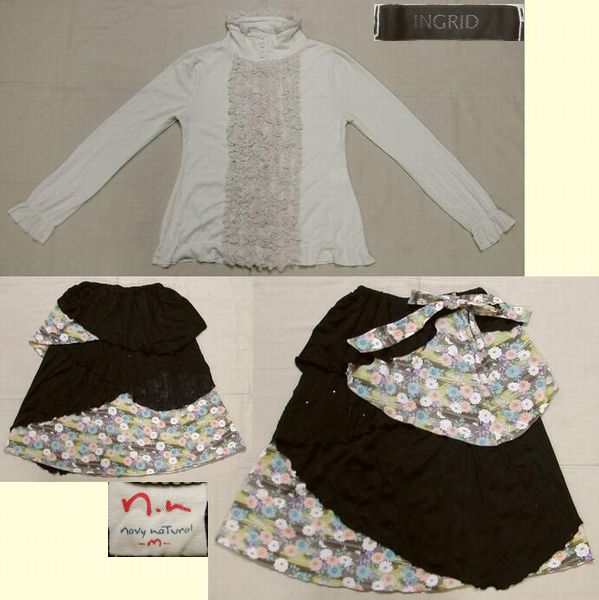 ■美品:ベージュ系ハイネックと黒地に花柄スカート? M DmN95