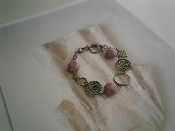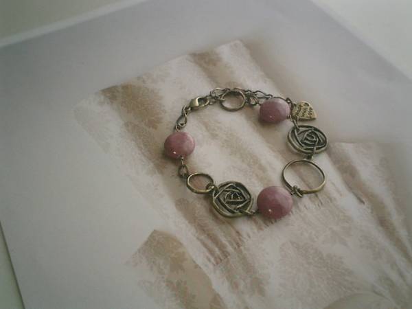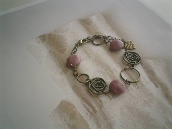 後ろボタンのワンピース・・シリーズです♪ロージーの休日・・ロードナイトと薔薇のブレスレットです♪12ミリのコインのロードナイトは薔薇のチャームやデザインリングを合わせて可憐な表情です♪長さは全長23センチ位で調節自由です♪お揃いのネックレスも出品しています♪♪シンプルで飽きのこないいつまでも着けられるデザインを考えて作りました!ハンドメイドをご理解頂いてノークレーム、ノーリターンでお願いします