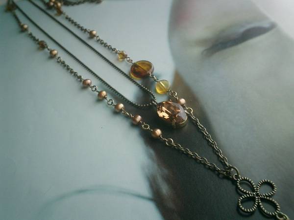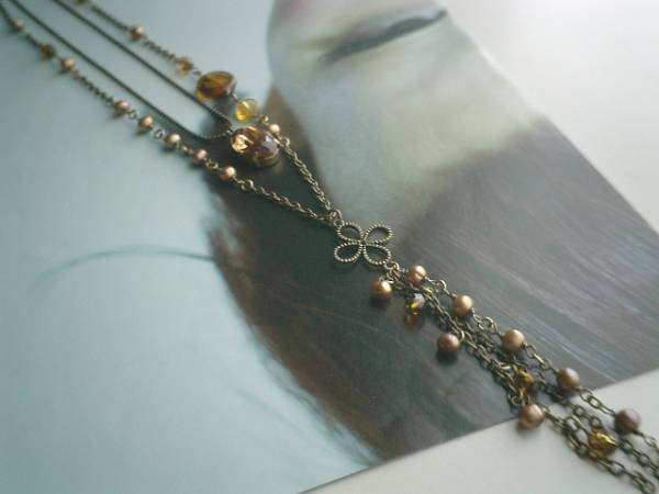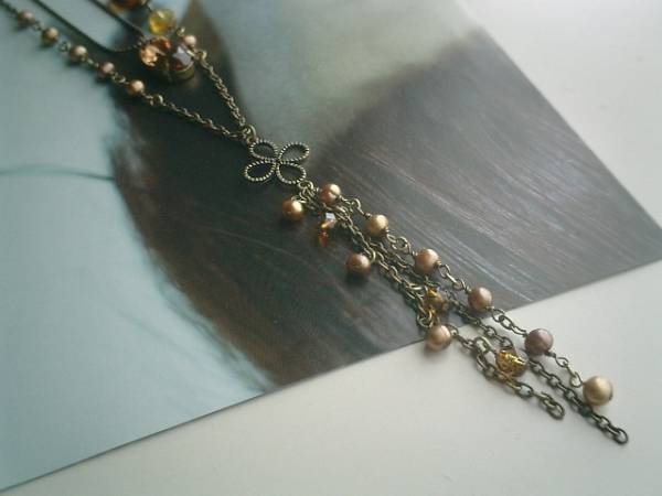 シベールのこだわり・・シリーズです♪パールで始まる物語Ⅳ・・パールとスワロのネックレス2点セットです♪ライトブラウンでまとめて秋のロマンチックしています♪パールのネックレスはシックなライトブラウン色の6ミリのポテトの淡水パールにアンティークビーズのコインやチェコビーズを合わせました♪トップは20ミリのクローバーのメタルチャームにチェーンを合わせてクラシカルな表情です♪長さは84センチ+アジャスター12センチで最長96センチ位です♪トップは12センチ位です♪スモークトパーズ色のスワロは13×18ミリです♪華奢なボールチェーンを合わせて可憐な表情です♪長さは64センチ+アジャスター12センチで最長76センチ位です♪それぞれ単品やお揃いのブレスレットも出品しています♪♪シンプルで飽きのこないいつまでも着けられるデザインを考えて作りました♪ハンドメイドをご理解頂いてノークレーム、ノーリターンでお願いします