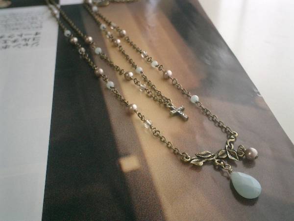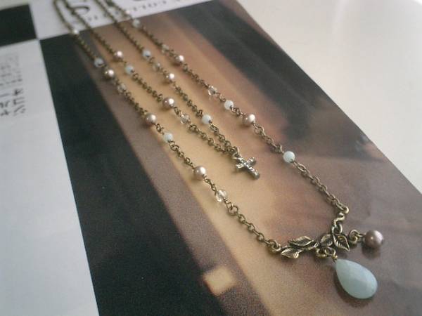 秋の美術館・・シリーズです♪私的ロマンチズム・・儚げなアマゾナイトの2連のネックレスです♪ジルコニアクロスやデザインチャームを合わせて大人のロマンチックしています♪4ミリの丸玉のアマゾナイトに4ミリの丸玉のスモーキークォーツや6ミリの淡水パールを合わせました♪♪トップのアマゾナイトは15×10ミリのフラットドロップです♪ジルコニアクロスは16×10ミリ位です♪長さは70センチ+アジャスター12センチで最長82センチ位です♪お揃いのブレスレットも出品しています♪♪シンプルで飽きのこないいつまでも着けられるデザインを考えて作りました♪ハンドメイドをご理解頂いてノークレーム、ノーリターンでお願いします