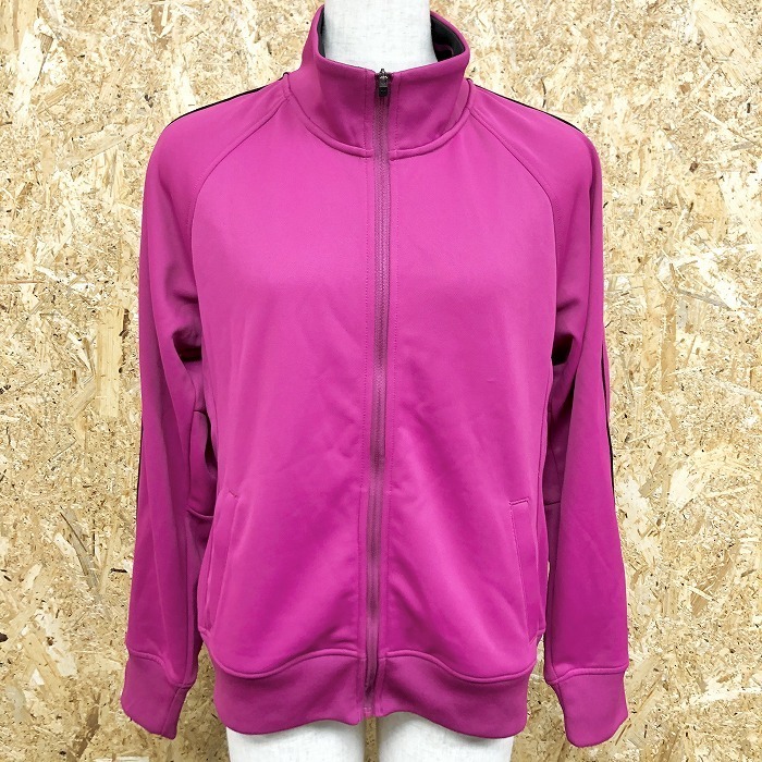 商品タイトル | UNIQLO DRY ユニクロ L レディース トラックジャケット ジャージ 袖にライン ラグラン 無地 長袖 ポリエステル100% パッションピンク |