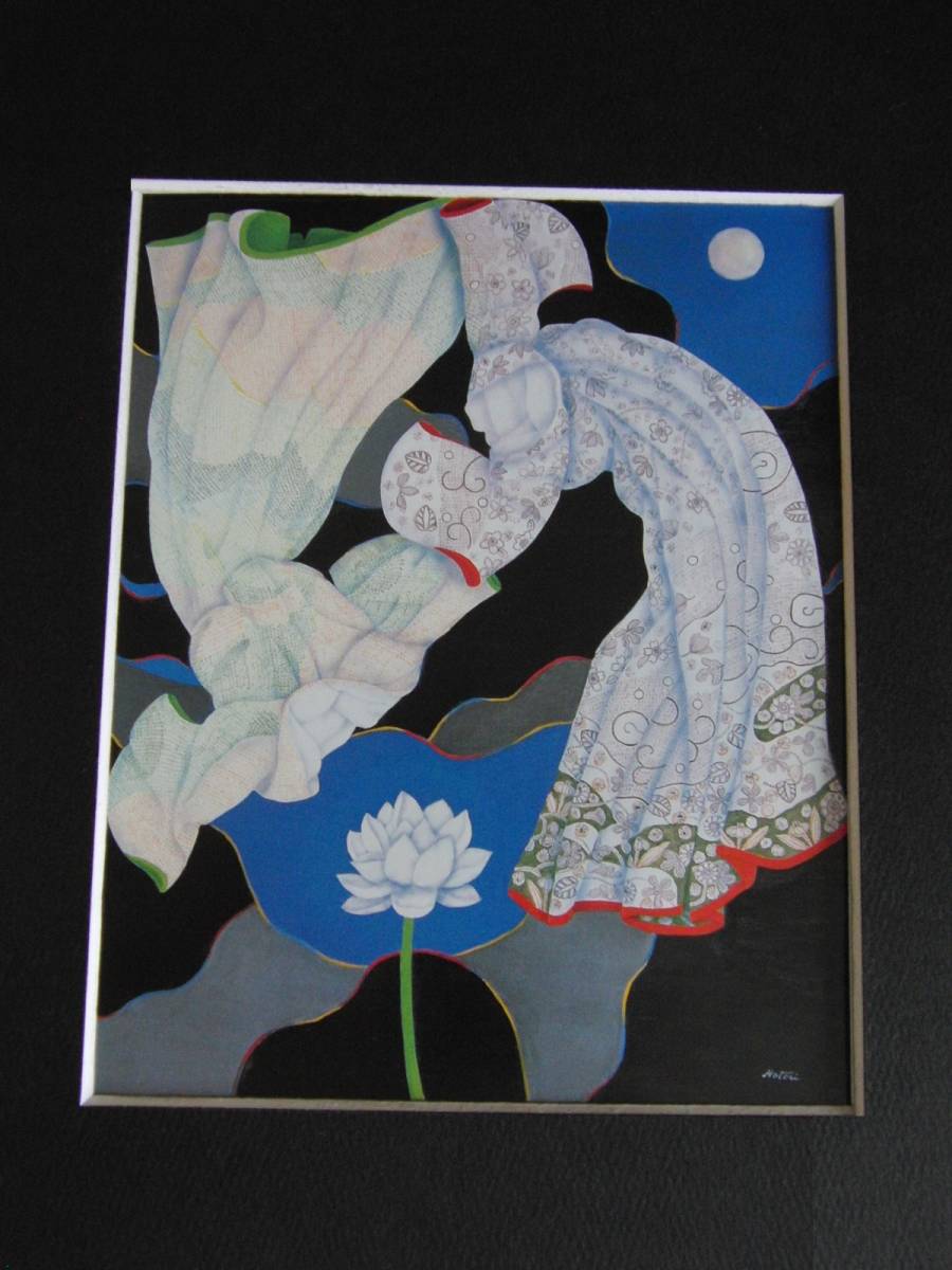 阿美代子、【蓮池】、希少な額装用画集より、新品額装付、状態良好、送料込み