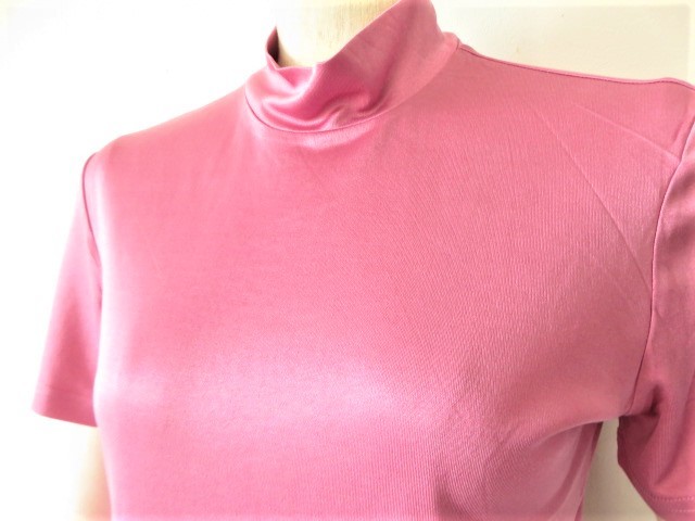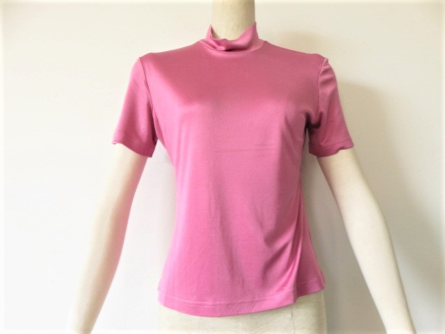 【PINORE】ピノーレの高級シルク ハイネック カットソー、お色は光沢あるピンクです。
