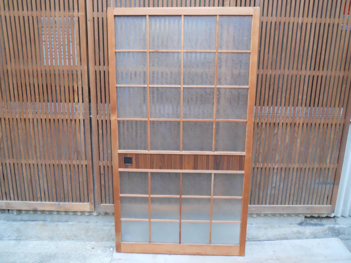 最終値下げ!M7852 50年前 京都古民家より 型板ガラス引戸 千草 高176.5cm横98cm奥3cm(0307)【送り先は会社 事務所 店舗限定】【個人様は西濃運輸局留め】