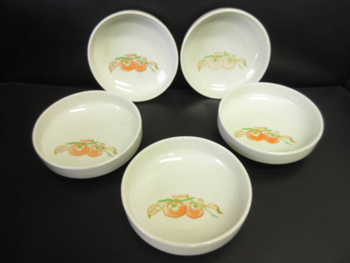 《食器》和 「小鉢×5点セット:柿の絵」 高さ:約4cm・口:約13cm レトロなデザイン
