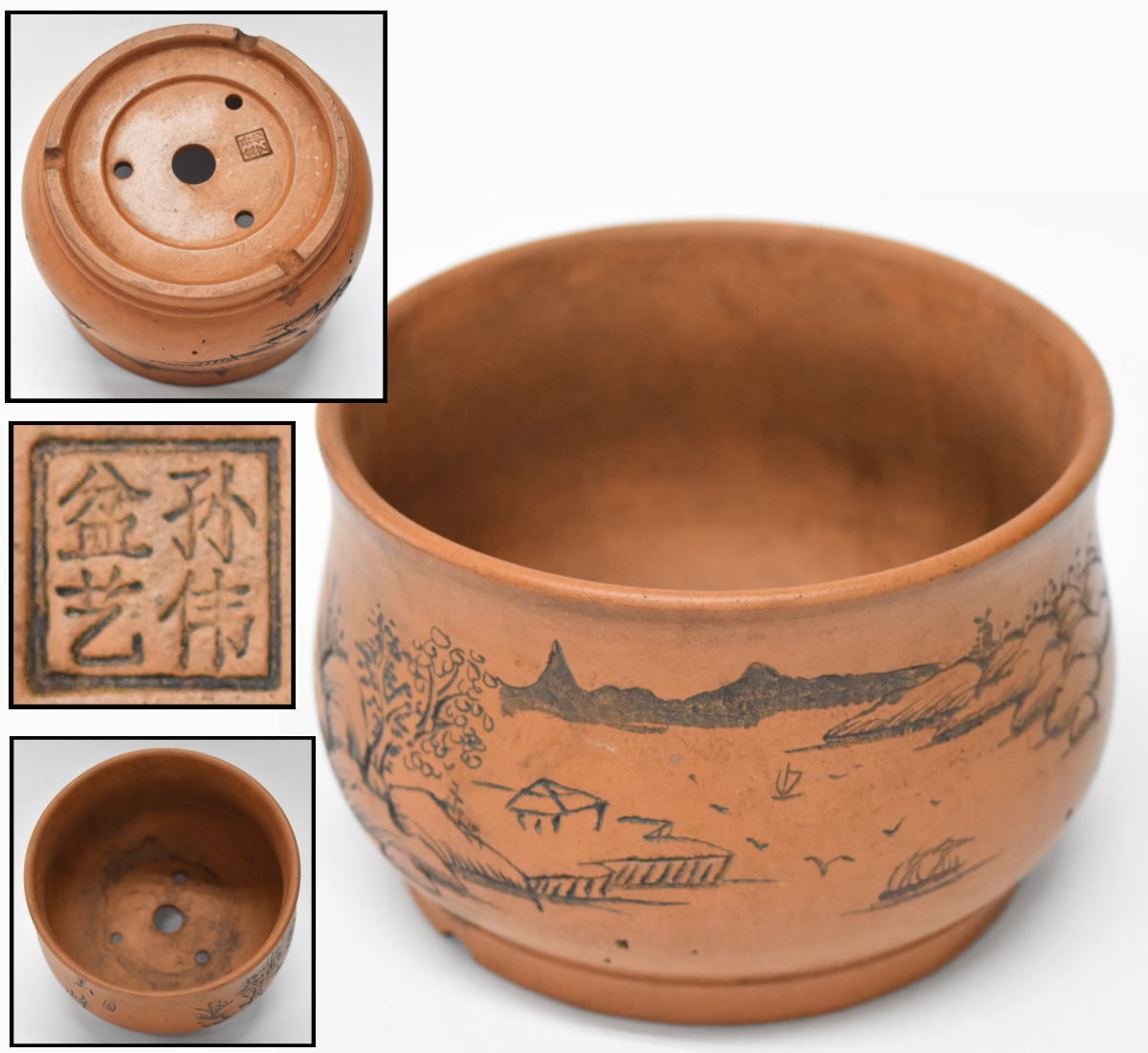中国宜興 紫砂 孫偉盆芸 在銘 盆栽 花鉢 |