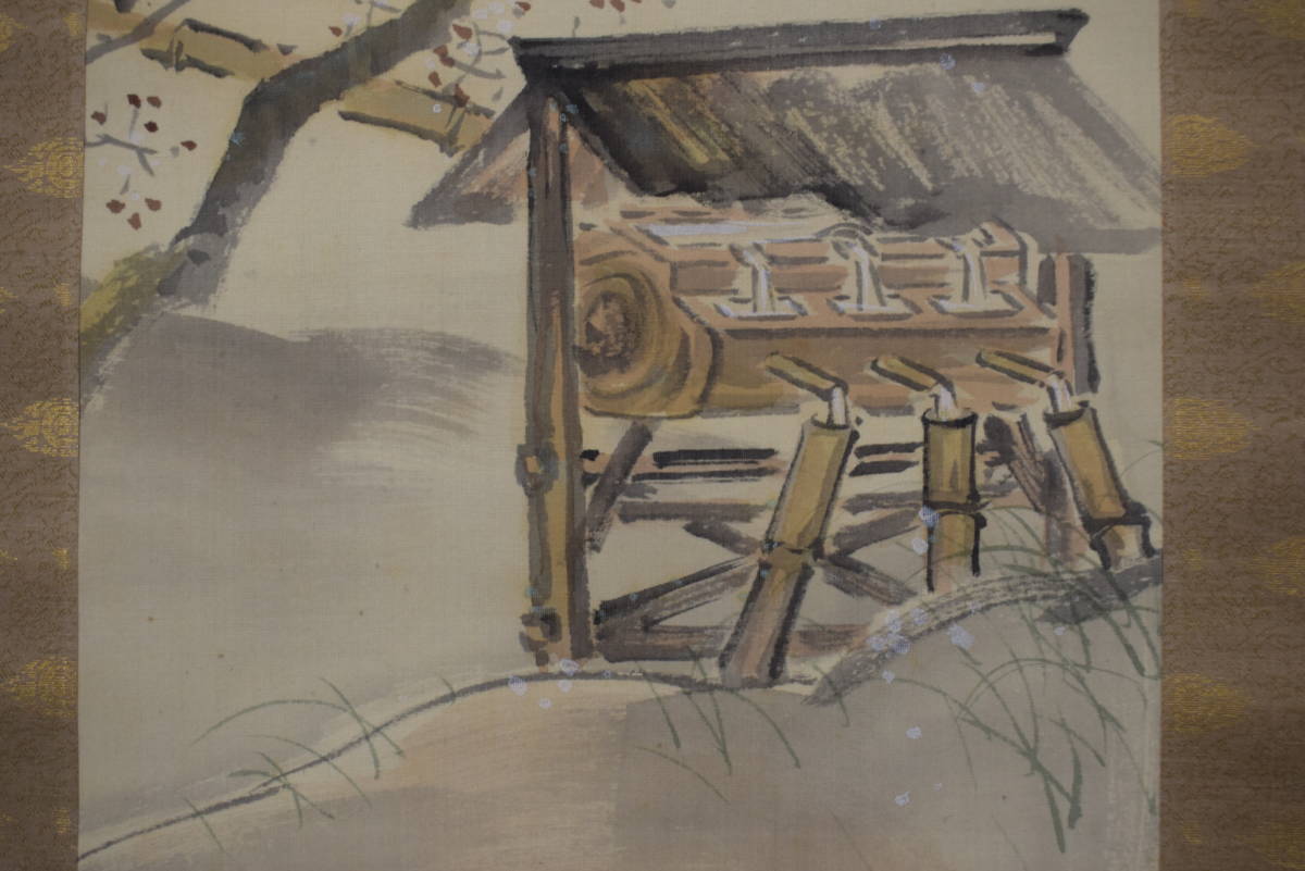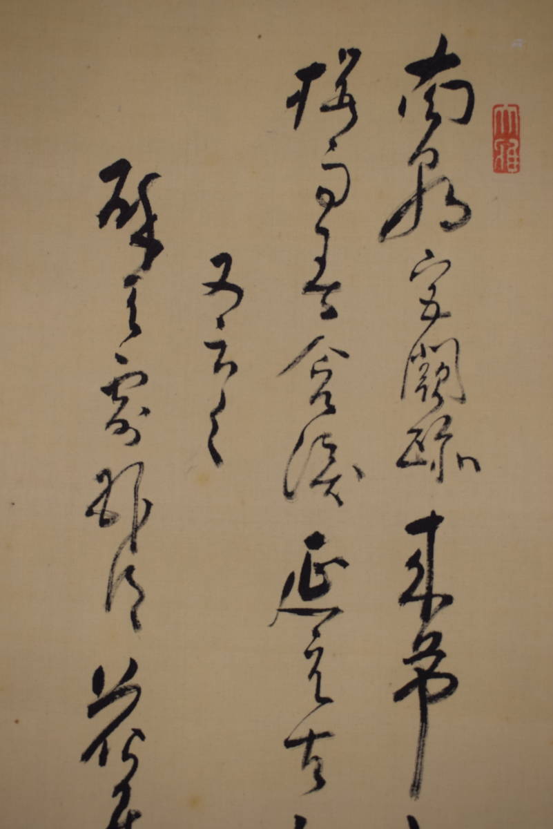 【作品状態】 本紙は絹本肉筆です。本紙は多少の薄汚れあります。表装は良好です。