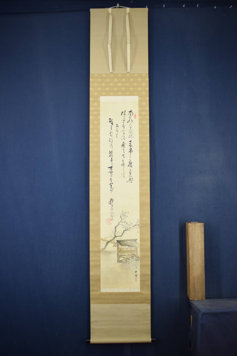 真作/竹村秋峰(画)生田南水(賛)/南朝宮跡桜図/画賛//掛軸☆宝船☆Y-64 JM