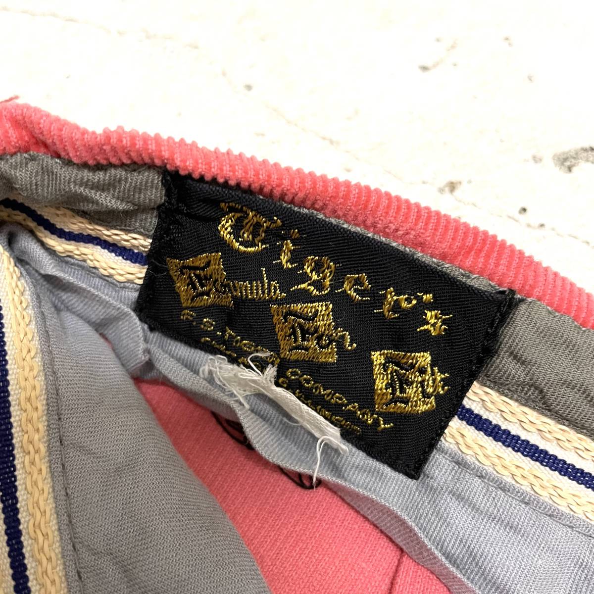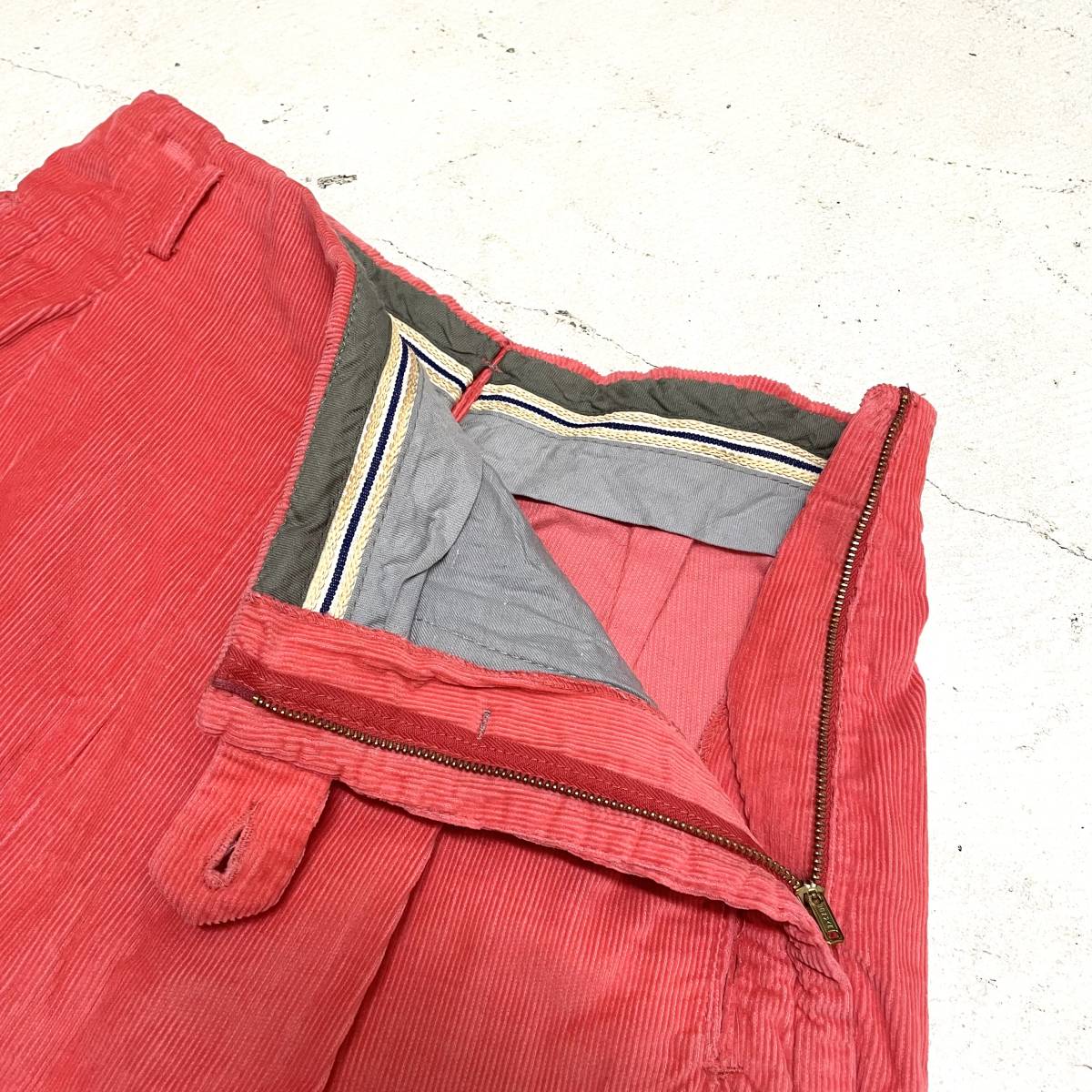 1980年代のビンテージです。 アメリカ古着になります。 サーモンピンクの綺麗な色、細い畝のコーデュロイになります。 タックの入ったふんわりとしたシルエット。 ジッパーは真鍮CONMER片爪です。 未使用になります。 洗濯済みになります。お探しの方におすすめです。 | |||