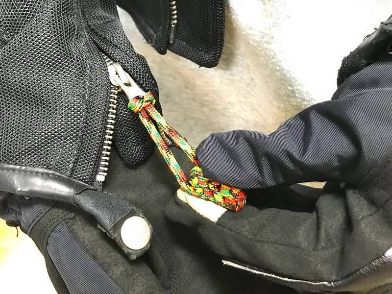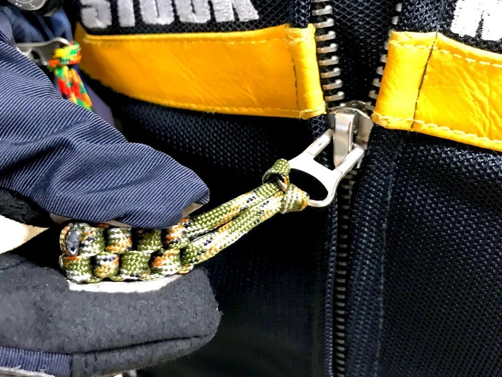 非常に丈夫なパラシュートコードを使用したジッパータブです。