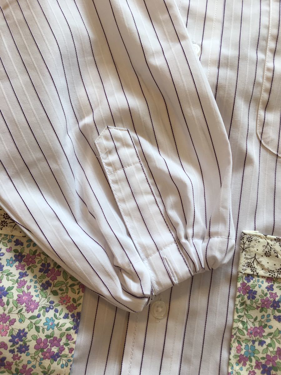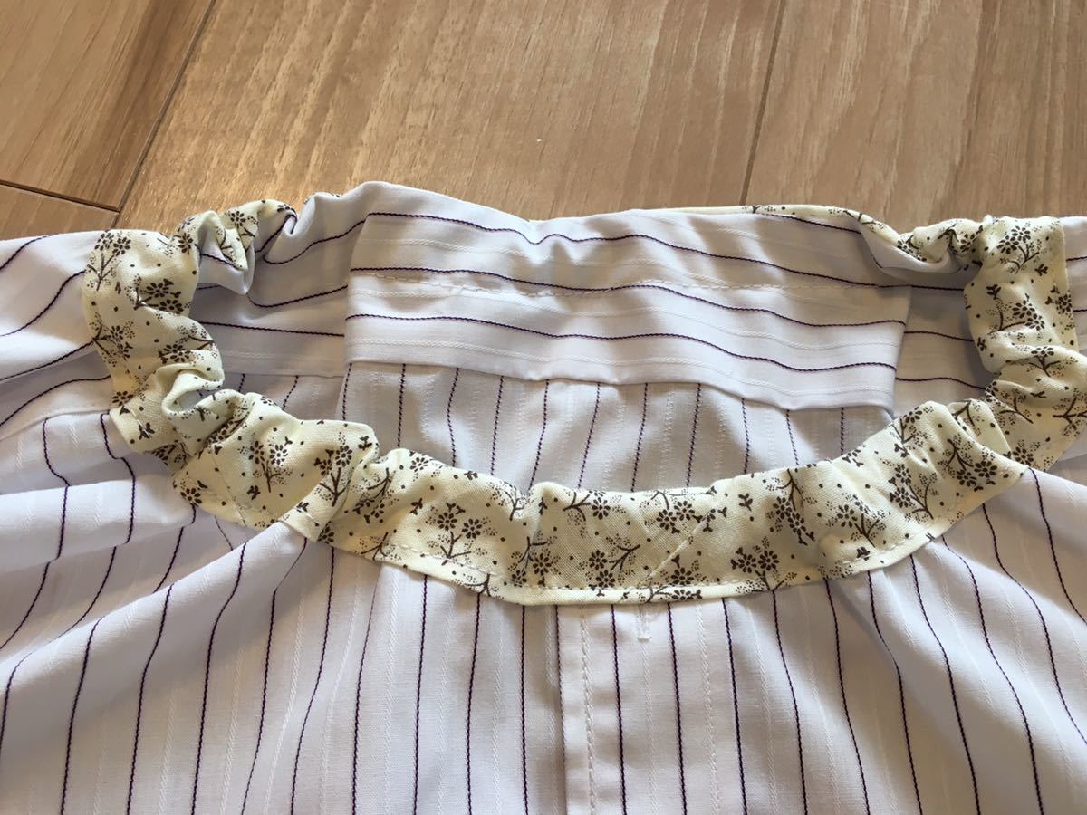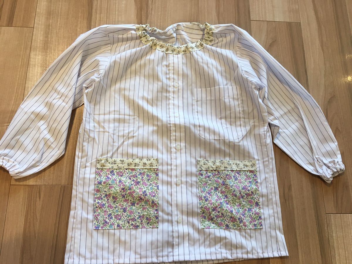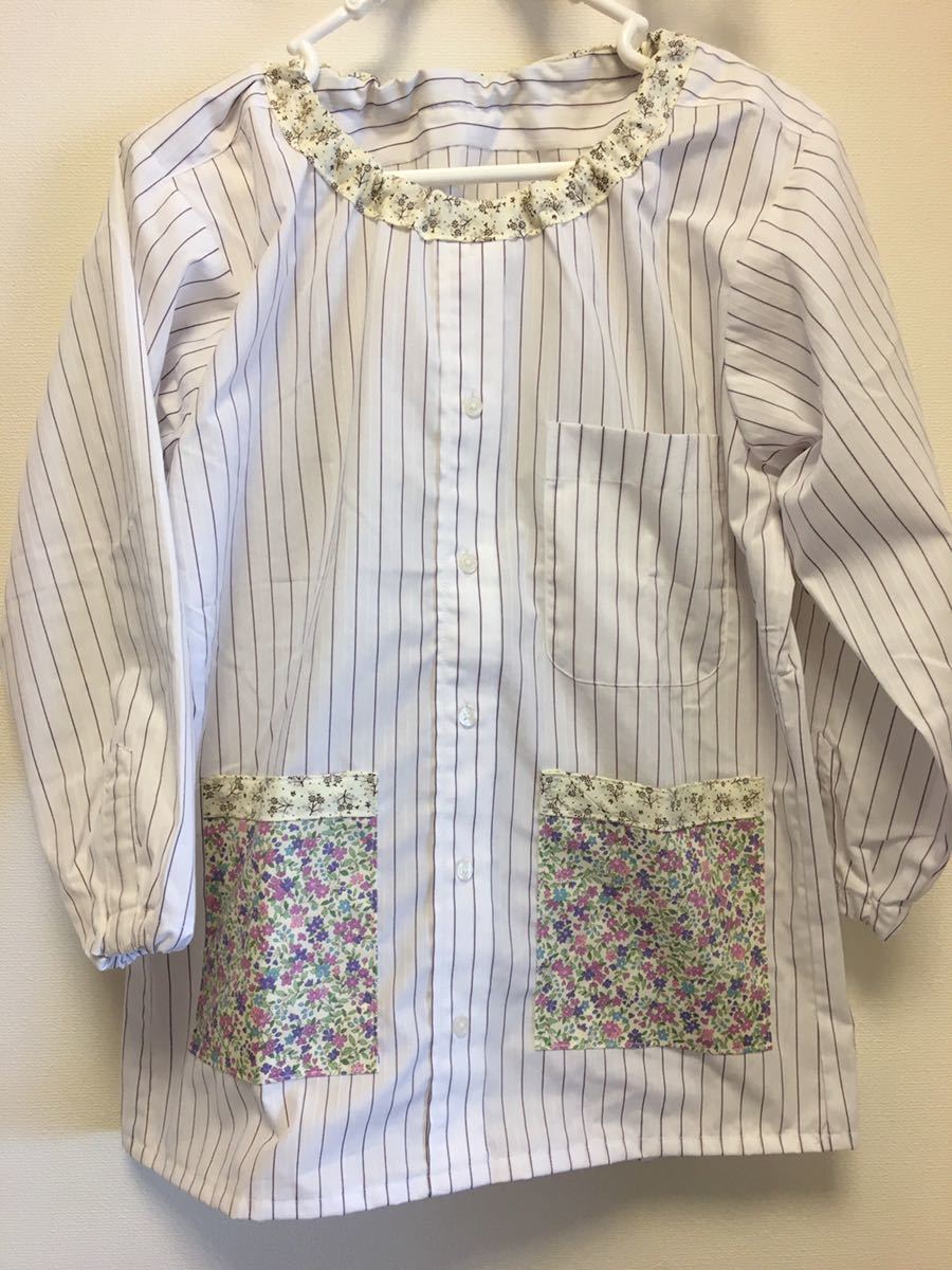中古の男性用のワイシャツをリメイクしてスモックを作りました。