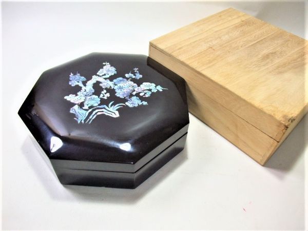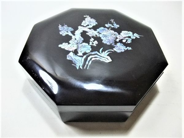 美しい青貝の八角螺鈿の菓子器