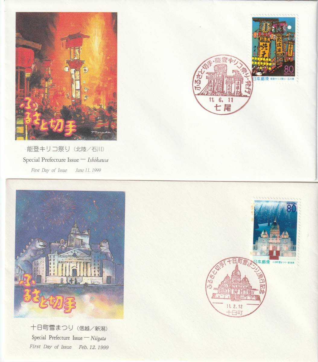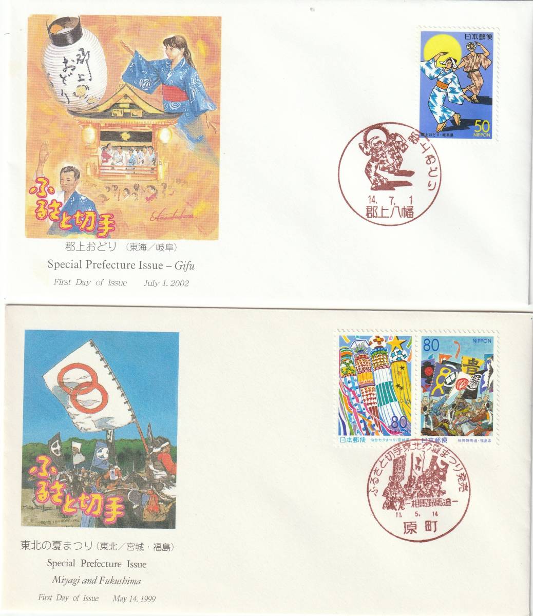 FDC 1990-2003年 ふるさと切手 日本の祭り  10通 版元混合