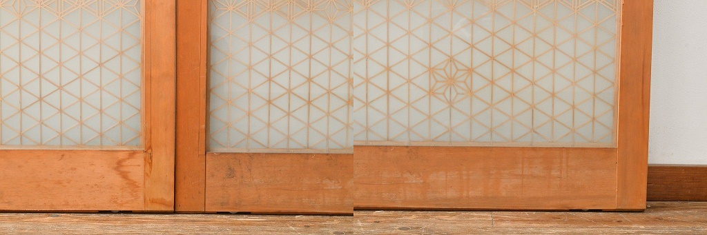 R-057460 中古 美品 両面ガラス 組子細工が見事な全面組子入りガラス戸2枚セット(引き戸、建具)(R-057460)