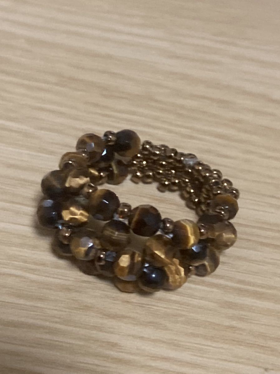 天然石 天然石(ハンドメイド)タイガーアイ編み込みリング