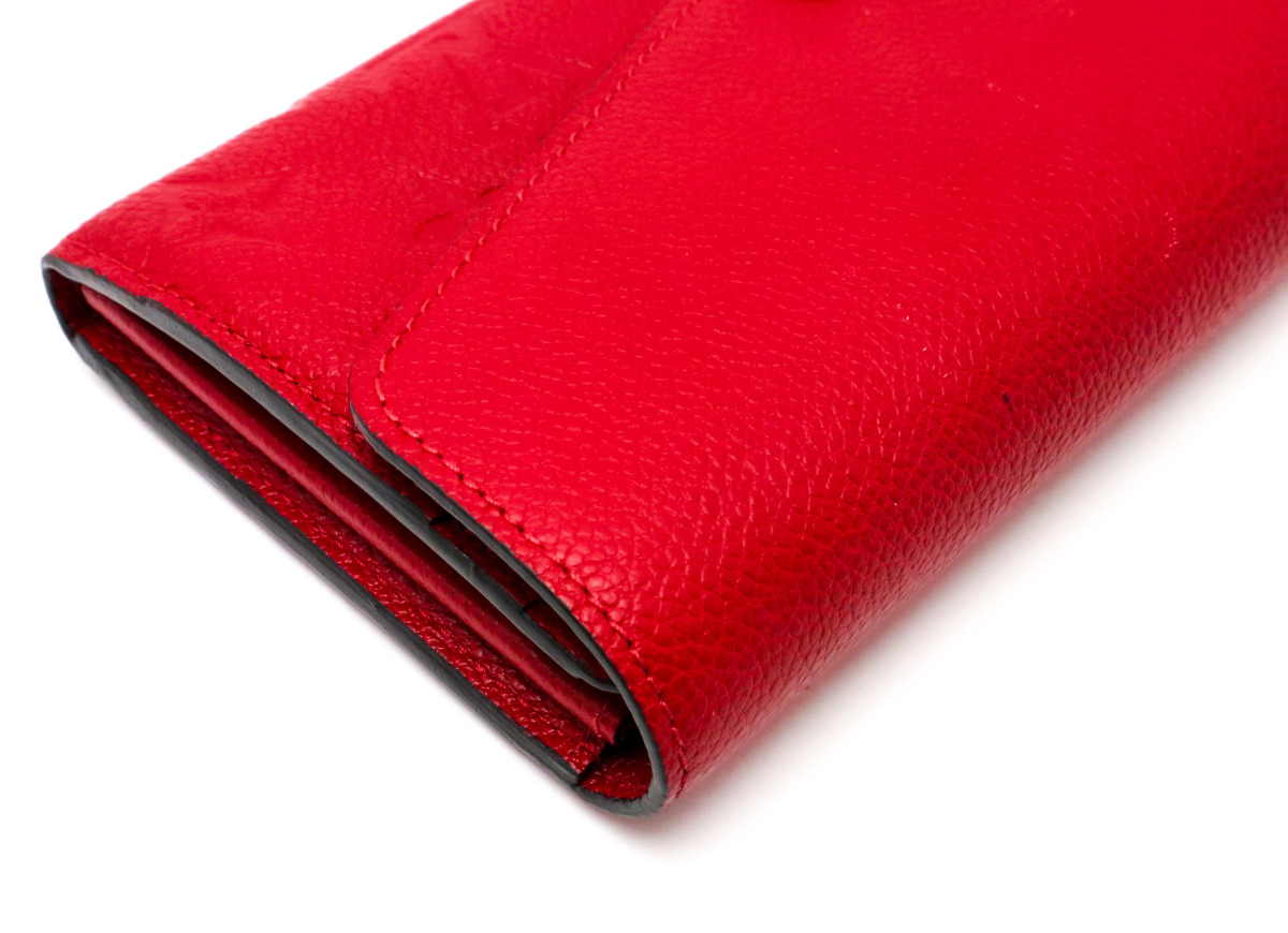 | 容量たっぷりで使い勝手の良い長財布です。カード用ポケット x 16、マチ付ポケット x 2、内ポケット1、外ポケット1、ファスナー付ポケット1です。金具小キズ、スレ、かぶせの部分にうっすらキズ、表面に小さな汚れが数か所あります。内側小銭入れうっすら汚れがあります。全体的には特に大きな問題のない綺麗なお品になります。 | |