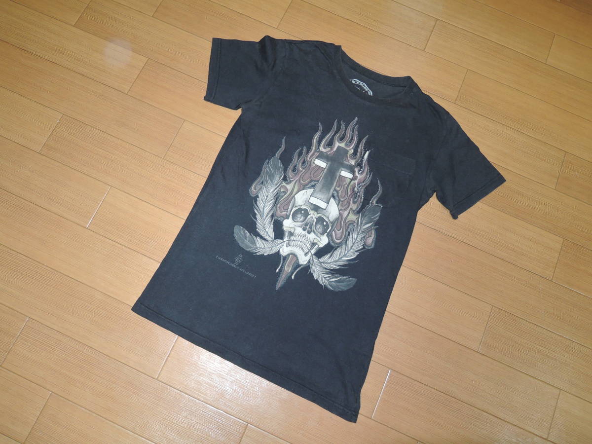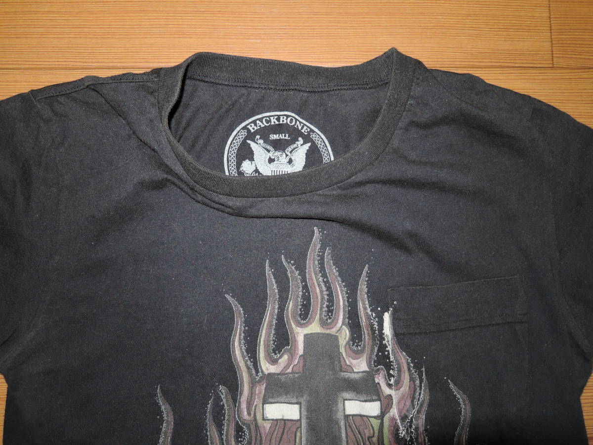 BACK BONE バックボーン カットソー S 黒 スカル ポケ Tシャツ /