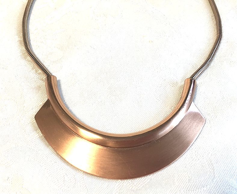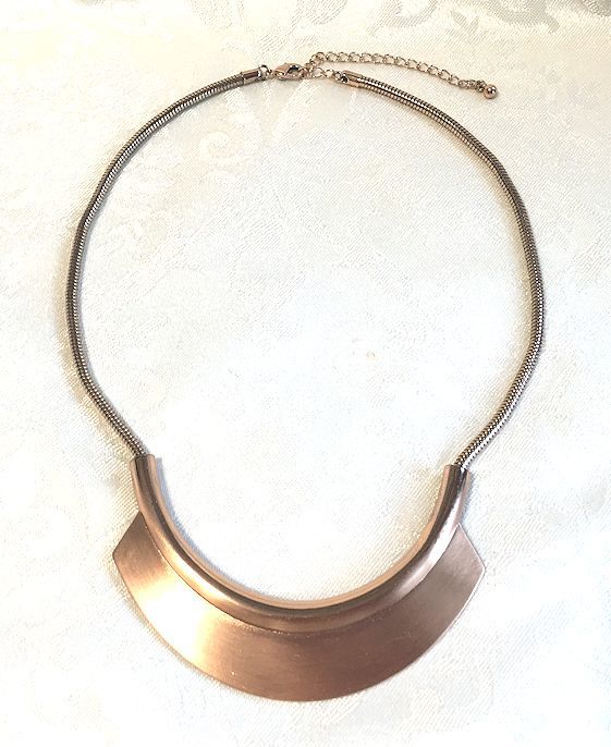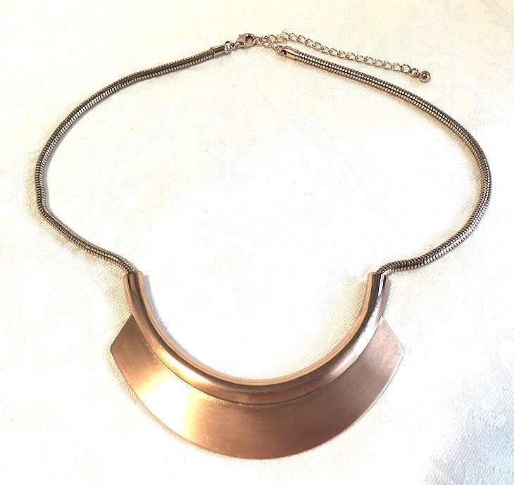 ◎ZARAかH&Mでお洋服と一緒に購入したと思います。洗練されたフォルムで、どんな服にも合わせやすい素敵なネックレスです。アクセサリーの整理中で、迷いましたが如何でしょう★