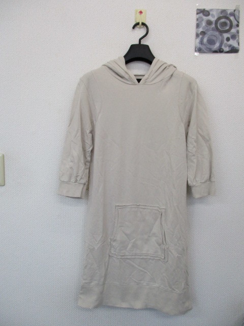 ★JEANASIS 七分袖 パーカーワンピース アイボリーベージュ(F)