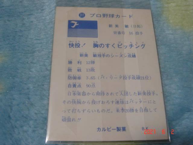 *カルビー 73年プロ野球カード  NO.317 (新美/日拓) 旗版*