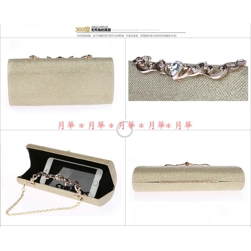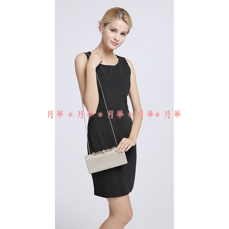シンプルなデザインでコンパクト。磁石で閉じる蓋部分は大きなビジューが艶やかなパーティーバッグです。オリエンタルでゴージャスでありながらシックなイメージ。 横長スタイルでかさばらずスマートに携帯できます。手持ち用(約38cm)と肩掛け用(約116cm)のチェーンがそれぞれ付属しています。