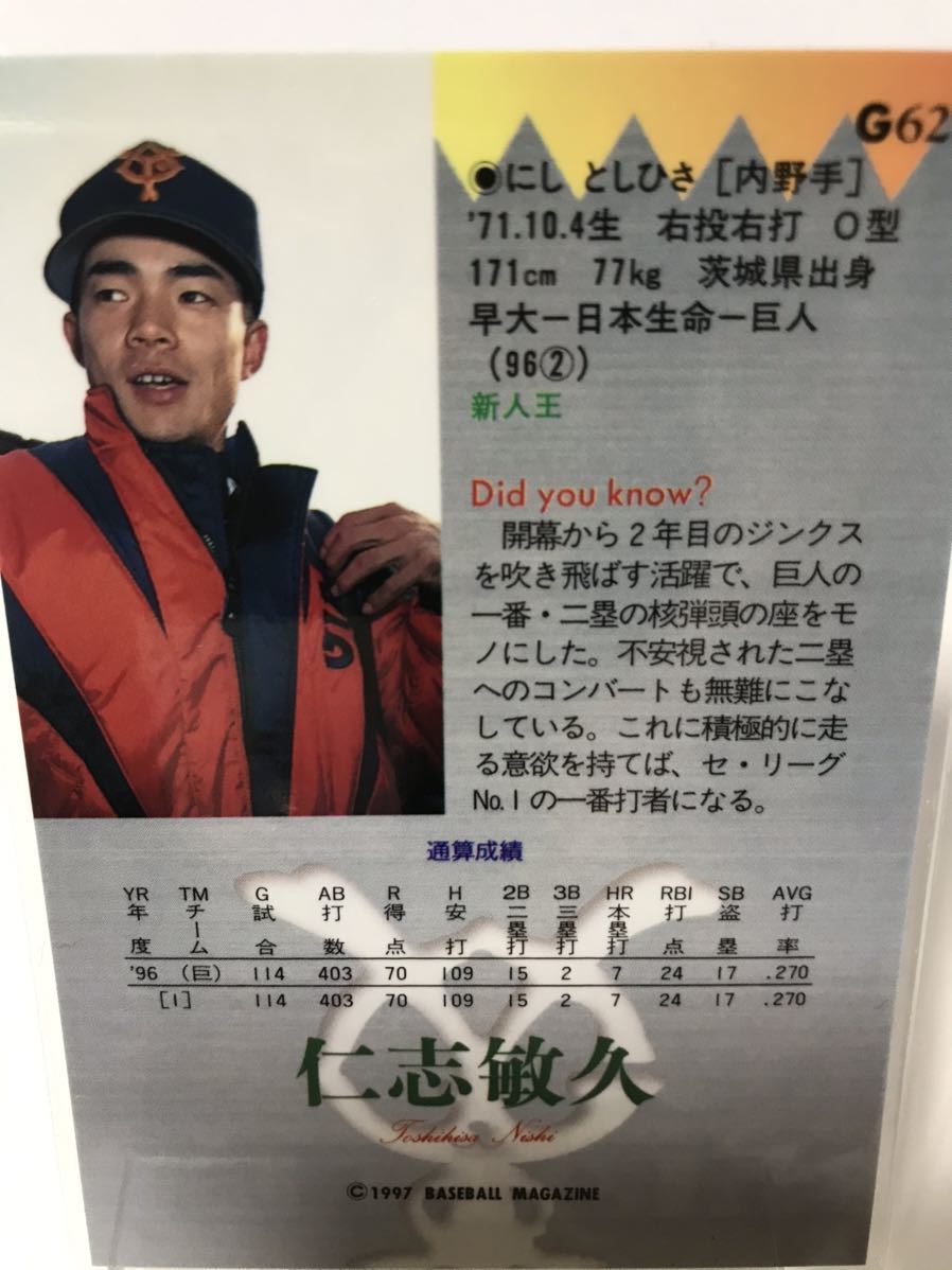 仁志敏久 1997 ベースボールマガジンカード G-62 読売ジャイアンツ 巨人