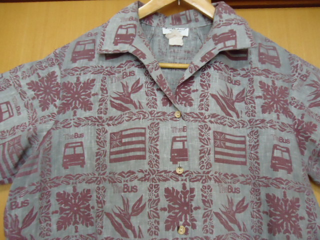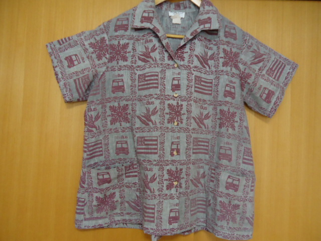 ハワイにて、古着として、購入しました。ハワイ州のバスの運転手の、女性用制服アロハシャツです。Tori Richard社製。オールオーバー。バンブーボタン。コットン・ポリエステル混合素材です。カラーは、グレー色地に、パープル色ロゴ・バス・ハワイ州の旗・花・葉っぱ柄です。クリーニング済みです。ハワイ製。なお、当商品のサイズ表示は、全てUSAサイズです。サイズ表示は、ありません。だいたいレディースのXLぐらいですが、平置き実寸を重視して下さい。なお、少々誤差は、ご了承下さい。肩幅約46センチ・身幅(脇の下)約58センチ・丈約71センチです。USED物なので、古着に、ご理解のある方・24時間以内に、お手続き入力後、期限内にかんたん決済、出来る方のみ、ご入札をお願い致します。少々襟周り薄汚れあります。数字は、こちらの整理番号です。この商品は、1点物です。 ※※発送方法・送料は、レターパックライト郵便(追跡可能・補償無し)ですと、430円又は、レターパックプラス郵便(追跡可能・手渡し配達・補償無し)ですと、600円又は、ゆうパック送料着払い便(持ち込み割引有り・追跡可能・手渡し配達・補償有り・かんたん決済時は、送料0円ですが、送料のみ到着時支払い)です。※※ ☆★★★★★☆送料は、変わりますが、何点でも、同梱包可能です。数点落札されましたら、まとめて取引を、選択お願いします。☆★★★★★☆