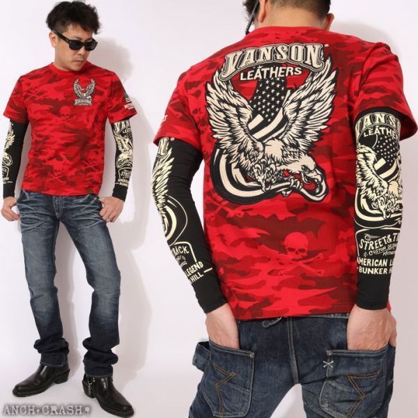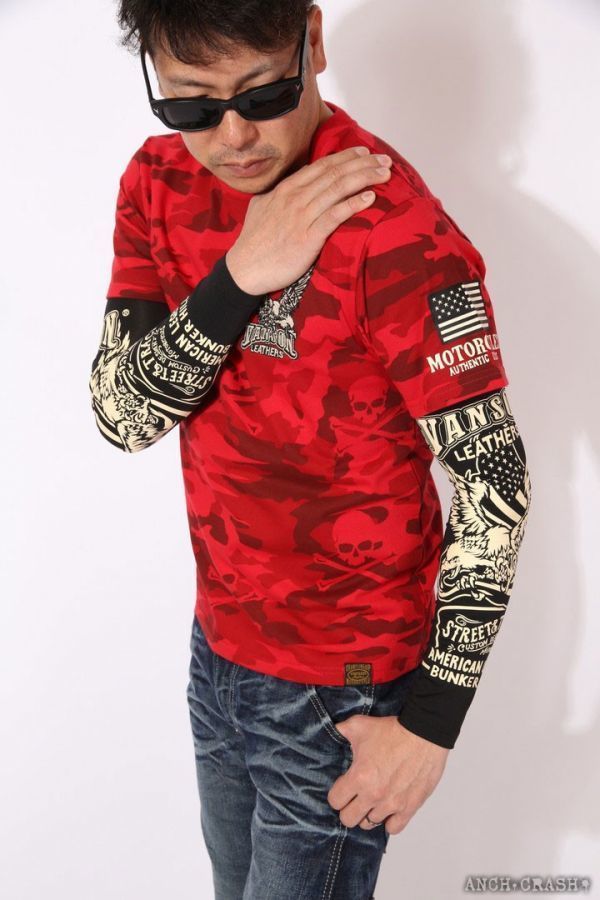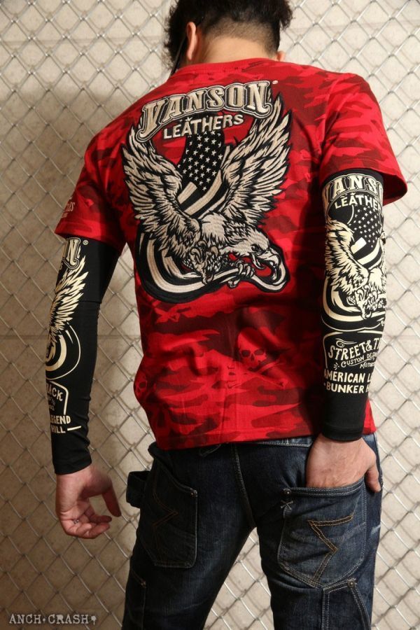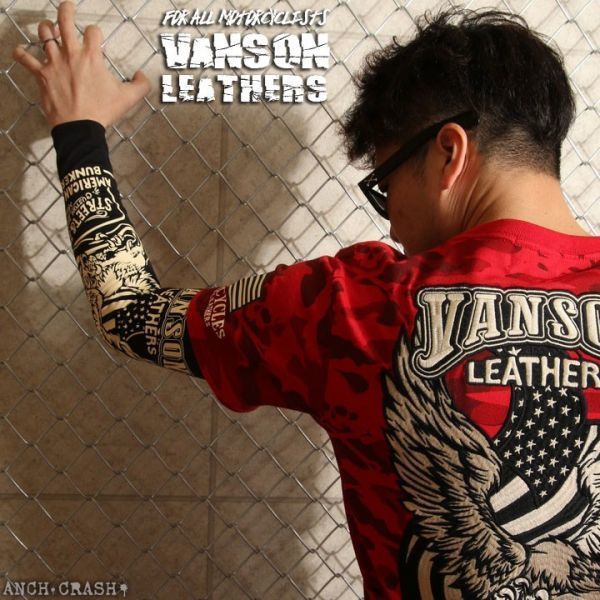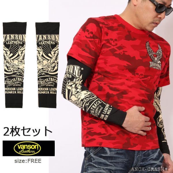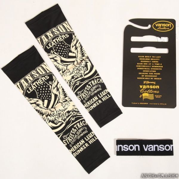 バンソン VANSON ドライ アームシェード NVAS-2001【ブラック】ロング イーグル サポーター プリント アメカジ