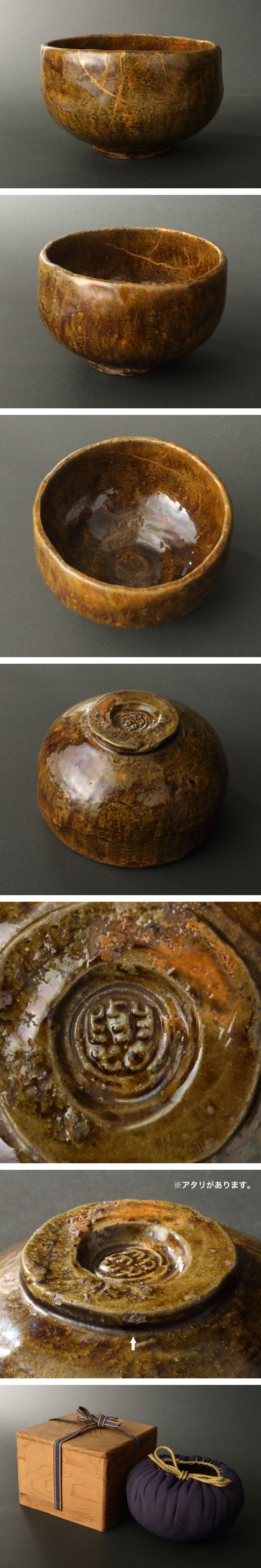 委託HK◇山本与興 飴釉茶碗 ※仕覆添え(茶道具 陶磁器 陶芸 加賀 金沢 加賀楽焼 楽焼 抹茶碗 茶事 茶席 茶の湯 鑑賞 古美術 古物 医師)